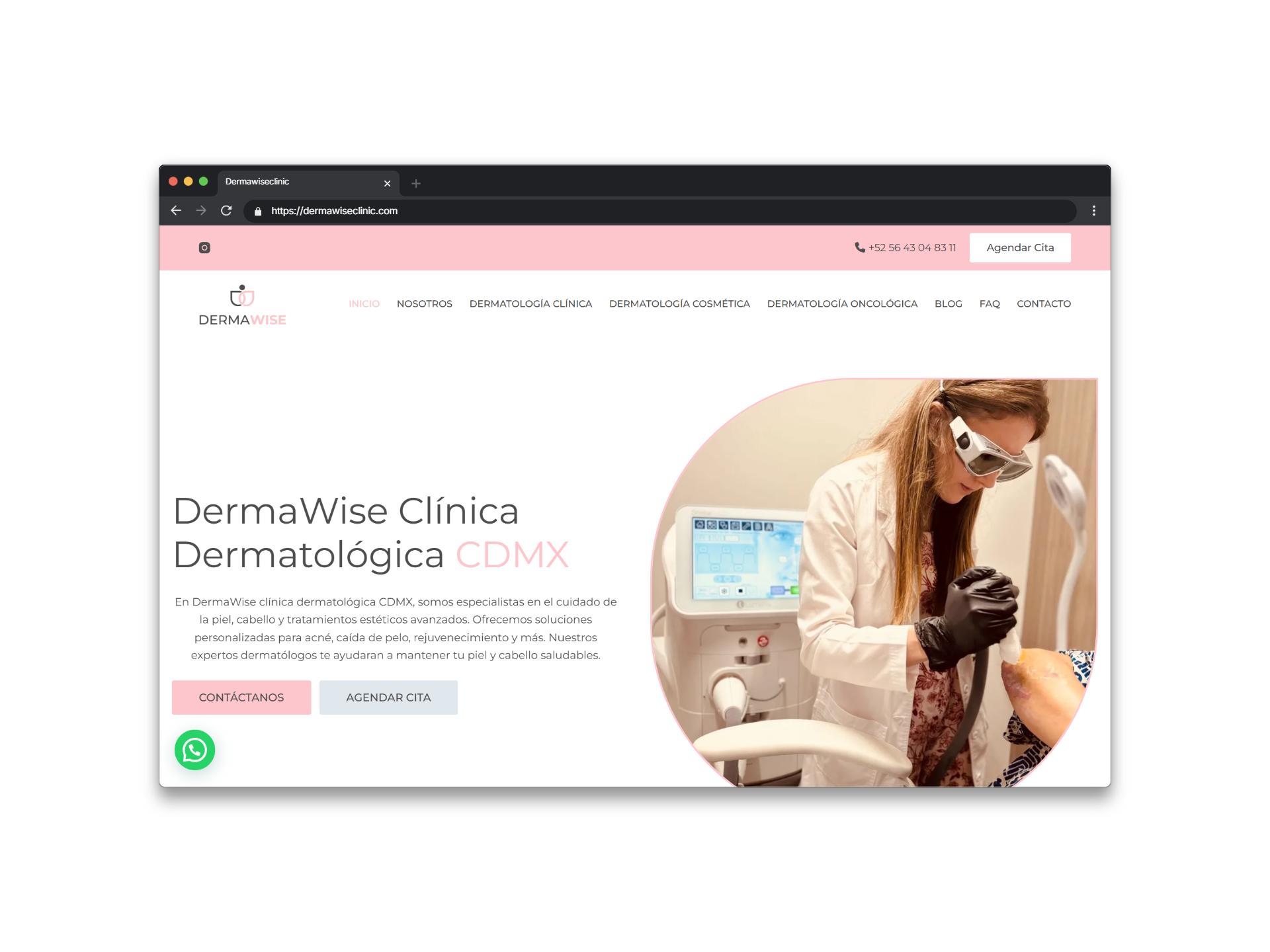 Este proyecto fue realizado para Dermawise Clinic, una clínica dermatológica ubicada en la Ciudad de México. El objetivo principal fue desarrollar una página web profesional, rápida y optimizada para atraer pacientes potenciales mediante estrategias de SEO local.
